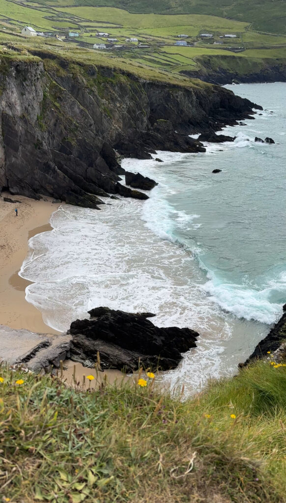Just 5 minutes from Dunquin Pier is Coumeenoole Beach. In our opinion, this is one of the prettiest beaches we have ever visited. The lush green cliffs surrounding the beach are stunning. While you won’t want to swim here due to the strong currents, you can head down to the beach and enjoy a walk along the shore.